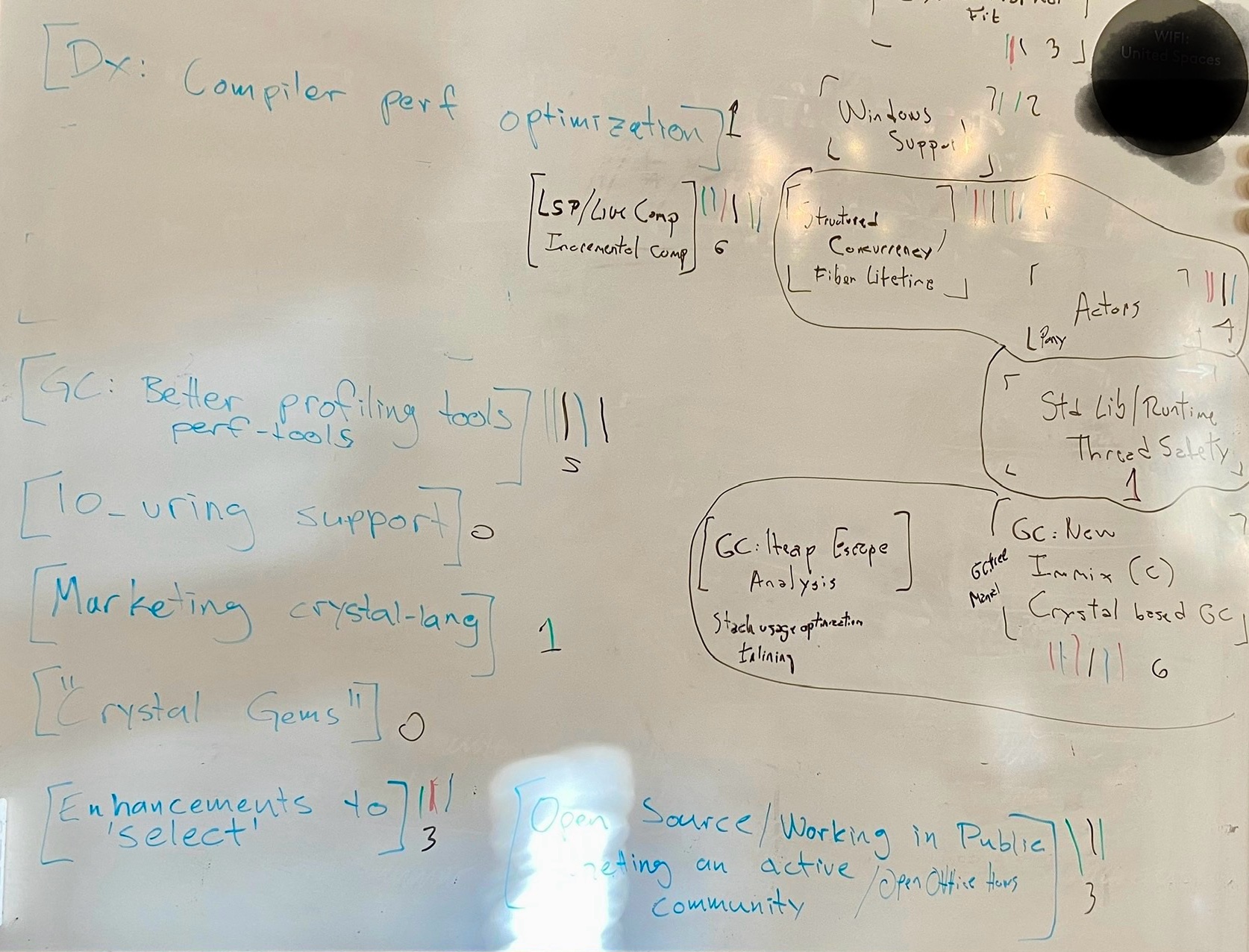 Section titled A Workshop Focused on the FutureOur time at 84codes HQ was dedicated to exploring the present and future of Crystal. We kicked off with presentations from both teams, sharing our visions, challenges, and experiences using Crystal in production. This set the stage for an engaging discussion on topics including: